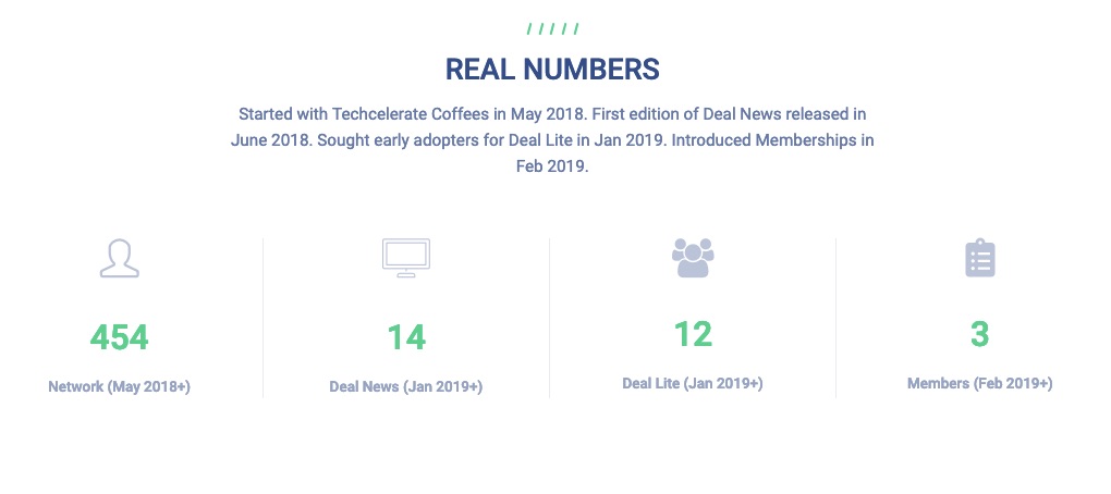 We want to get the final figure (currently 3) to 100 as quickly as possible. Then we have “buyer power”. Suppliers would offer better deals (e.g. SeedLegals). Investors would come to us instead of us having to chase them. Easier to build our Angel Network powered by current Tech CEOs of mature startups.
