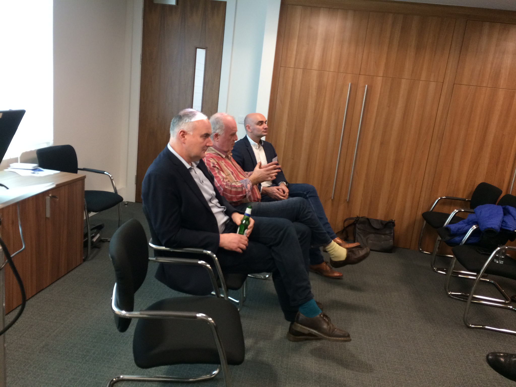 Malcolm Evans (in the middle) at Techcelerate Reunion – Paul Rawlings was late, hence the empty chair