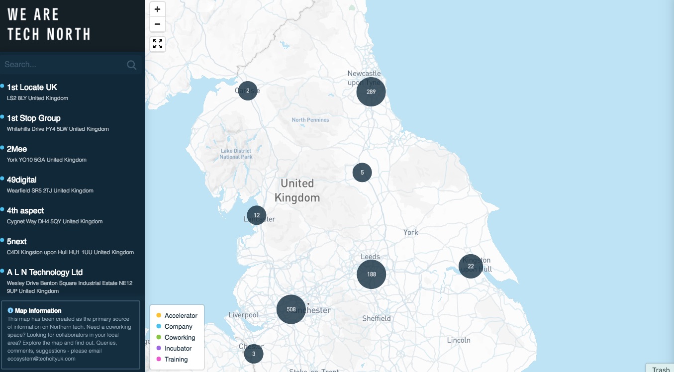 I’m glad to see that they have started to share data in an interesting and meaningful way. Today, TechNorth launched the beta of mapping out northern tech companies.